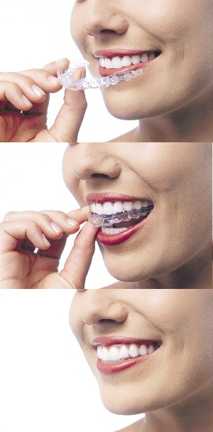 Invisalign uses 3-D computer imaging technology to depict the complete treatment plan from the initial position to the final desired position from which a series of custom-made, clear "aligners" are produced. Each "aligner" moves teeth incrementally and is worn for about two weeks, then replaced by the next in the series until the final position is achieved.